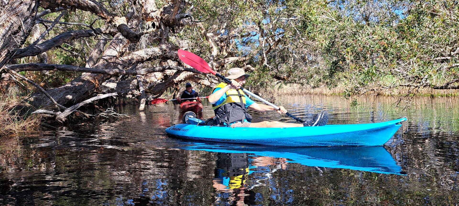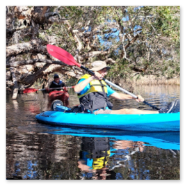 Everyone has a favourite paddle. Christa says hers is Saltwater Creek at South West Rocks. Many people may not know that the creek extends well beyond the Pedestrian bridge near the Surf Club and has many surprises and changes in width and atmosphere with much wildlife eg ospreys, water dragons, koalas, wallabies and even tawny frogmouths able to be spotted.