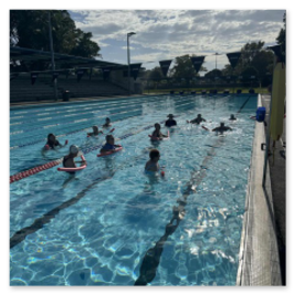 Water exercise is a wonderful and painless activity and has many positive health effects. A variety of activities eg water aerobics, are available or members can do their own thing. Classes are held early in the morning so members can enjoy a dip without children. A lifeguard is on site, portable steps into the pool are available along with hot showers, swimming tips and if members like - a cuppa afterwards.