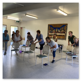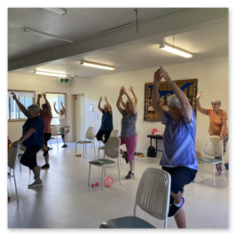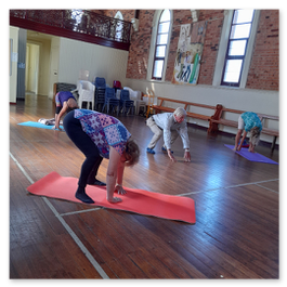 Gentle yoga practising physical poses, concentration and deep breathing.